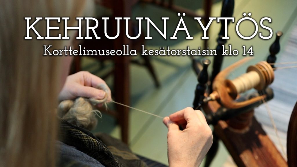 Korttelimuseon kehruunäytös Korttelilla kehrätään! Millainen on kuidun tie langaksi perinteisin menetelmin? Korttelimuseolla se selviää, nimittäin kehruunäytöksissä esitellään niin värttinän ja rukin kuin karstojenkin käyttöä. Esittelyn jälkeen halukkaat pääsevät myös itse kokeilemaan