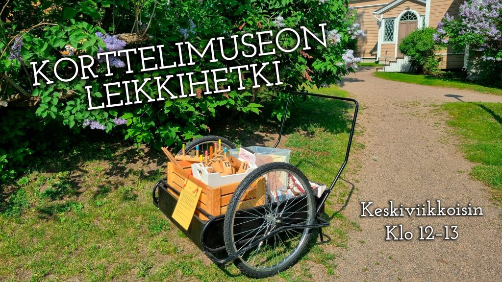 Korttelimuseon leikkihetket kesällä 2025 Millaisia leikkejä lapset leikkivät ennen? Tule Korttelimuseolle ottamaan selvää! Leikitään yhdessä kesän ajan keskiviikkoisin klo 12–13 (18.6.– 20.8.2025). Hyvällä säällä leikitään ulkona, sateella sisätiloissa. Kokoonnutaan Korttelimuseon